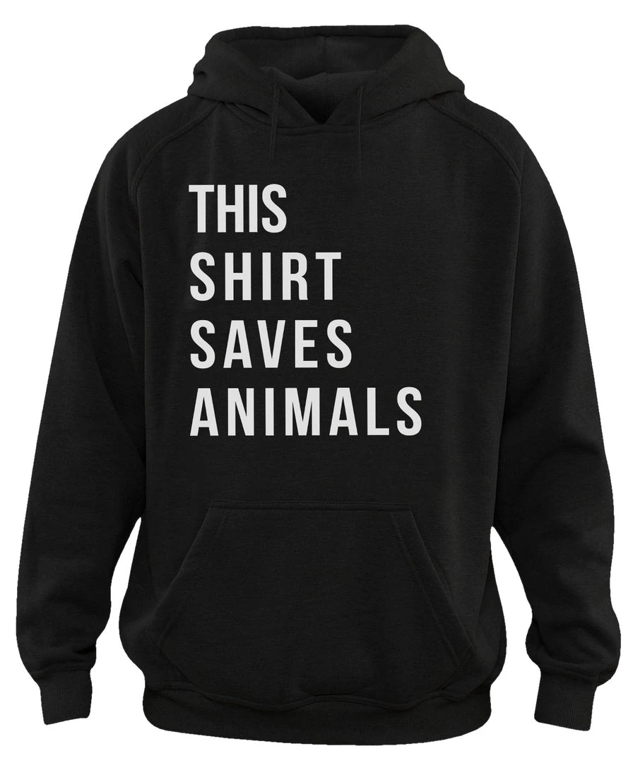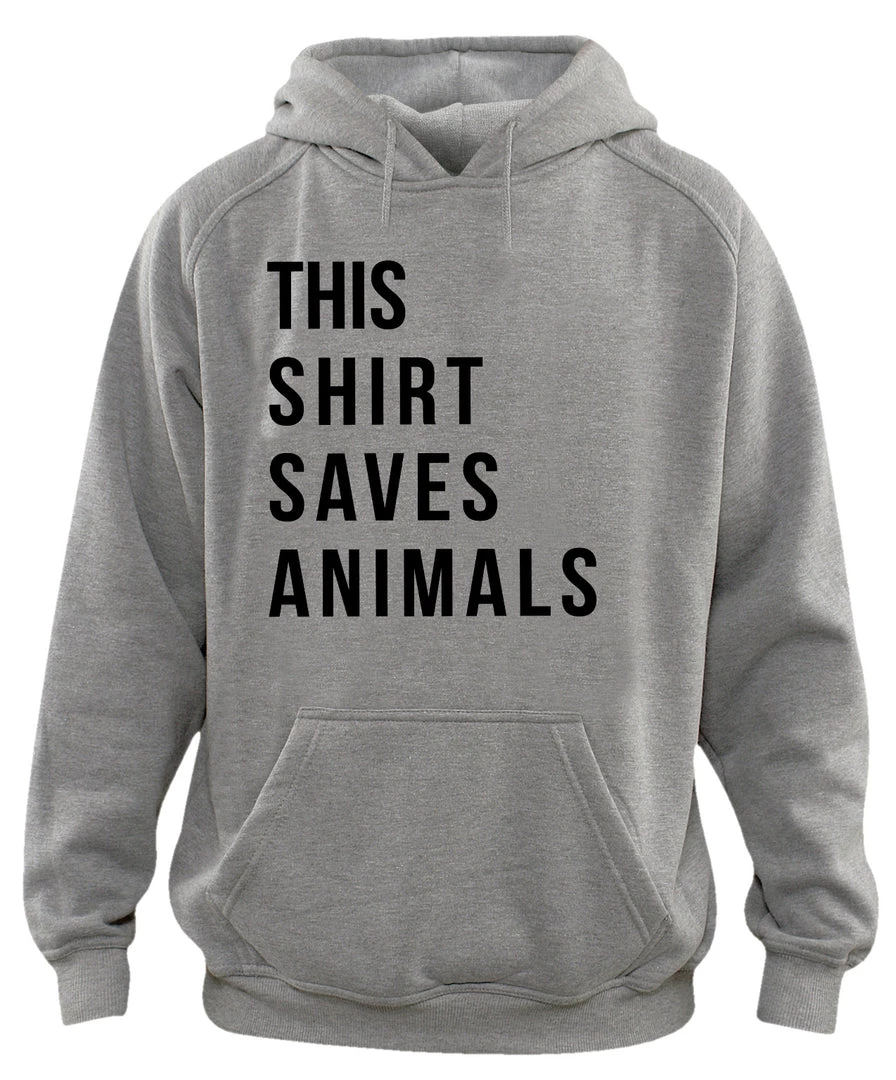 This super soft hoodie features our awesome This Shirt Save Animals text design on the front in a large, clean font!