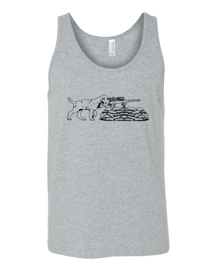 This super soft jersey tank top has our awesome Scout Pupper design on the front in a bold print!