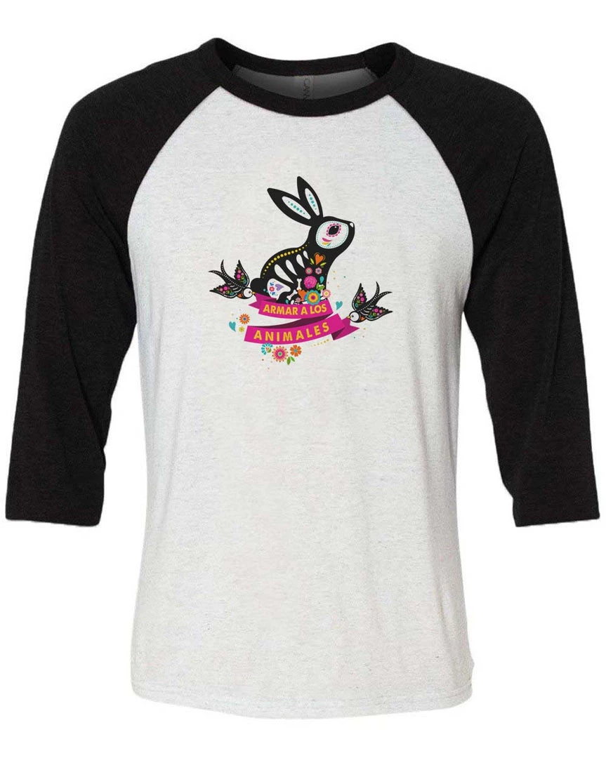 This premium 3/4 Sleeve Raglan is the softest of its kind and features our Bunny Alebrije design on the front!