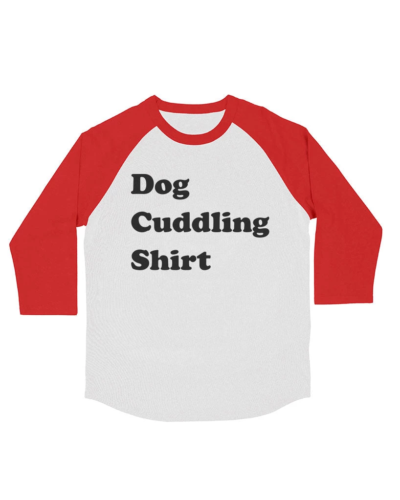 This premium 3/4 Sleeve Raglan is the softest of its kind and features our Dog Cuddling Shirt design on the front!
