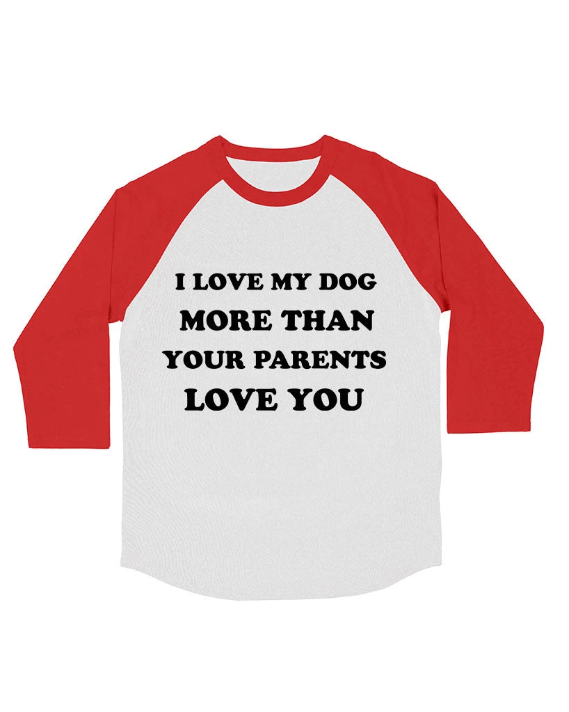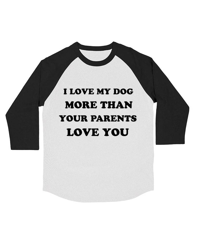 This premium 3/4 Sleeve Raglan is the softest of its kind and features our Love My Dog design on the front!