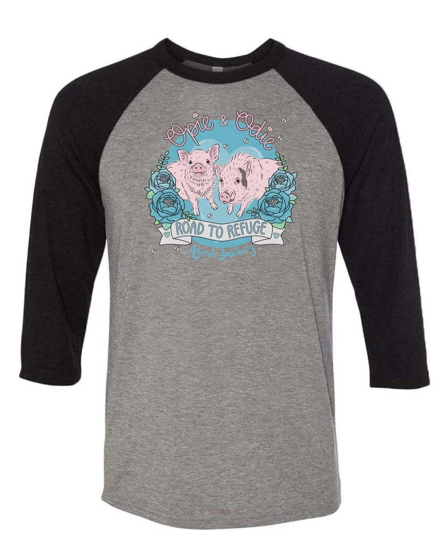 Road To Refuge Animal Sanctuary 3/4 Sleeve Raglans Unisex | Piggy Party | 3/4 Sleeve Raglan